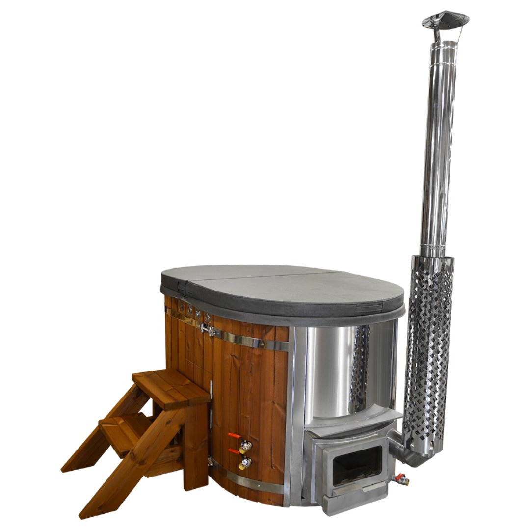 - Kompletní výbava: Součástí je interní topení s 2 m vysokým komínem, výbava pro čištění topeniště, teploměr, držák nápojů, míchací pádlo a dřevěný kryt.