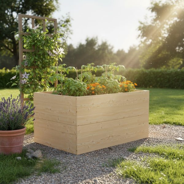 Záhon je vyroben z kvalitního severského smrku v přírodním provedení, který zajišťuje pevnost, stabilitu a dlouhou životnost. Jednoduchý a nadčasový design se hodí do každé zahrady, na terasu i do menších venkovních prostor.