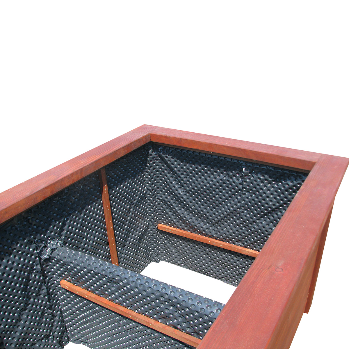 - Vždy opatřen nopovou fólií, která brání styku zeminy s dřevěnou konstrukcí a výrazně prodlužuje životnost záhonu.