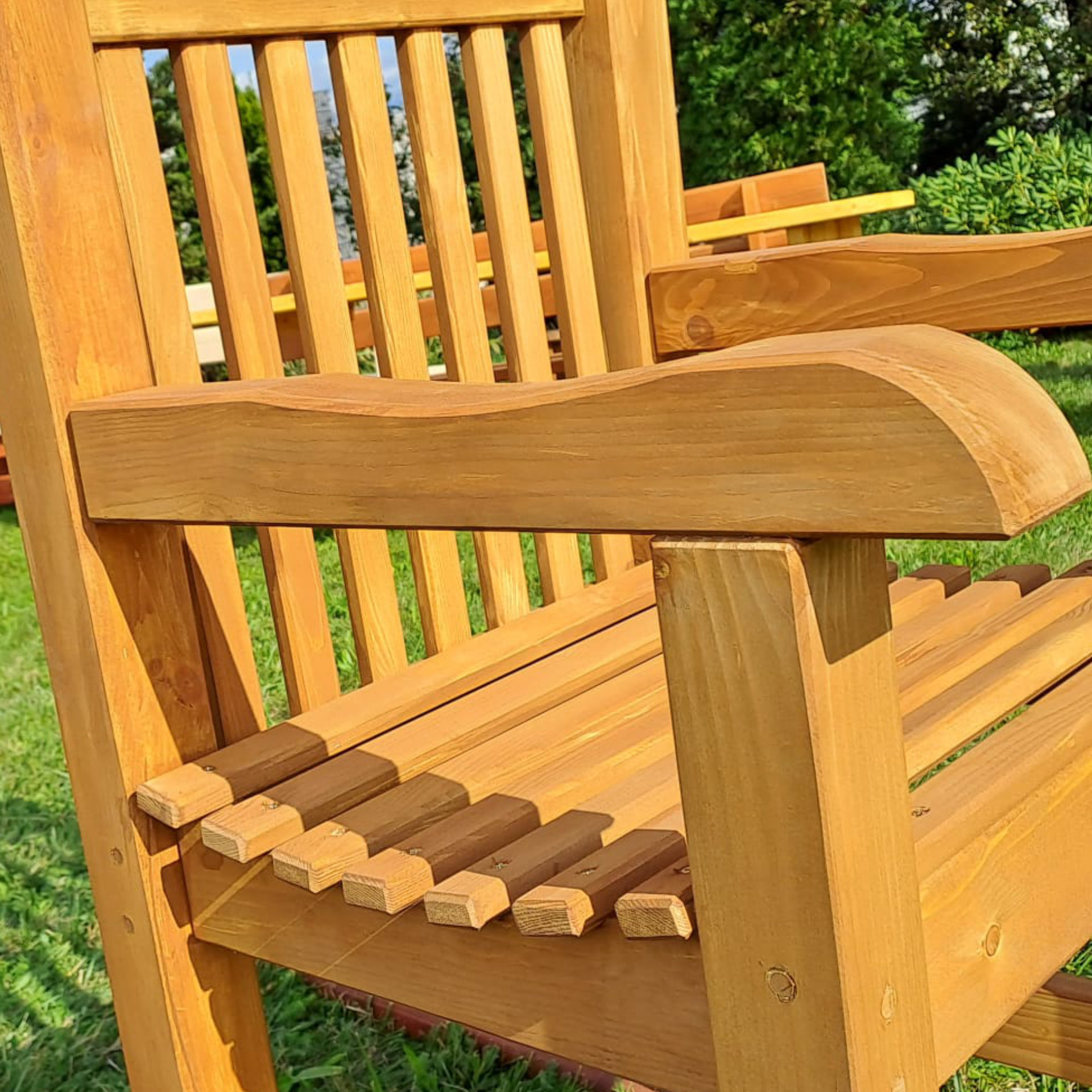 Ručně vyrobené zahradní křeslo z borovicového masivu. Krásně se bude vyjímat pod pergolou, altánem či jiným zastřešením.